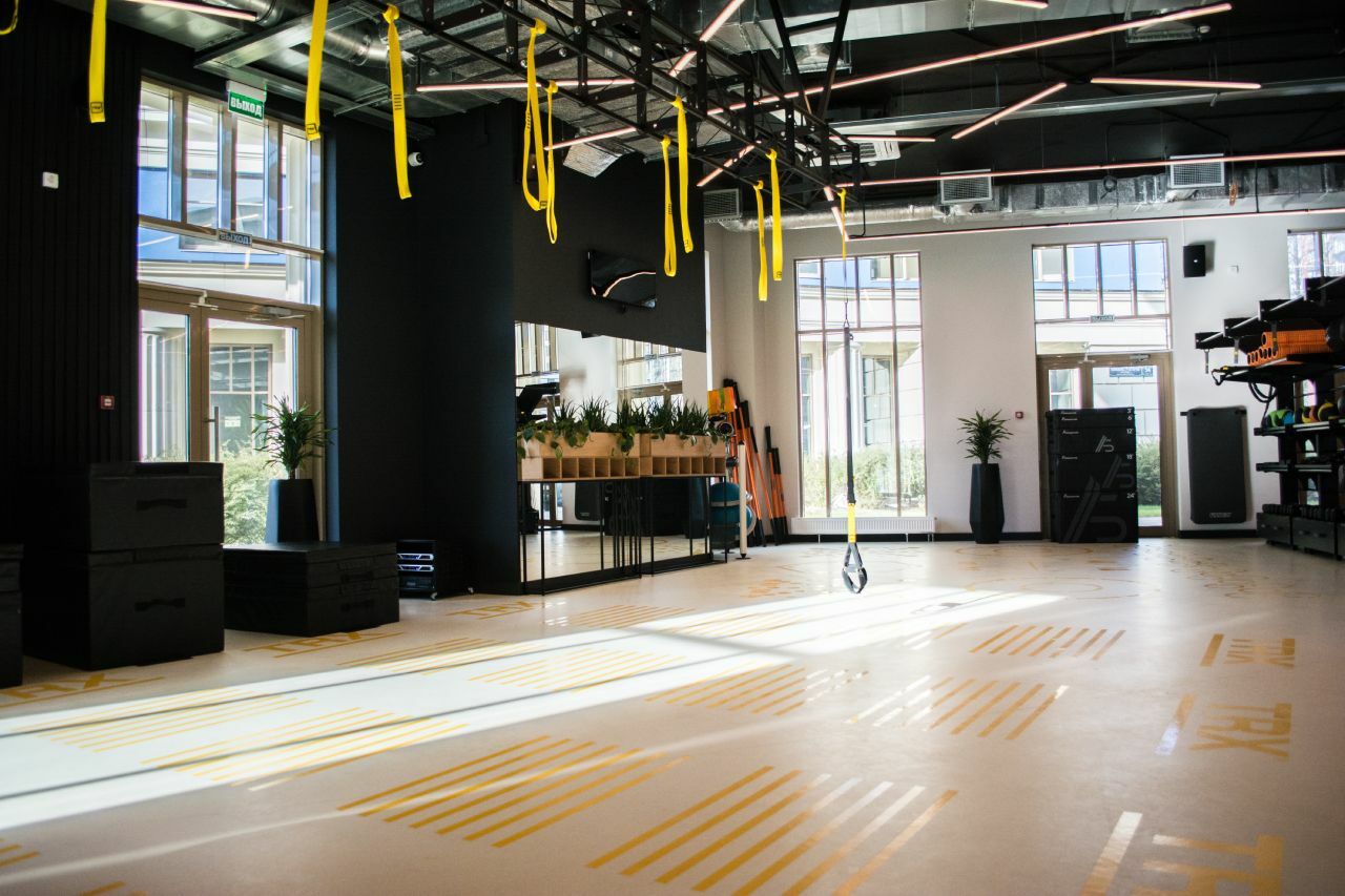 Кроме того, в тренажерном зале размещены аксессуары от польского бренда Tiguar, которые дополнят групповые тренировки по йоге, пилатесу, аэробике, а также силовые и функциональные занятия.