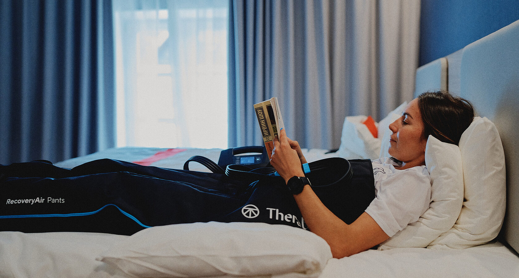 Чтобы улучшить разминку, Дина использует RecoveryAir JetBoots (20 минут), Theragun Pro Plus (5-10 минут), прямо во время тренировки – вибрирующий массажный роллер Theragun Wave Duo, перкуссионный массажер Theragun mini. После нагрузок спортсменка делает домашний сеанс восстановления с RecoveryAir JetBoots (40 минут), если есть мышечные зажатости – использует вибрирующий массажный мяч Wave Solo для точечной терапии.