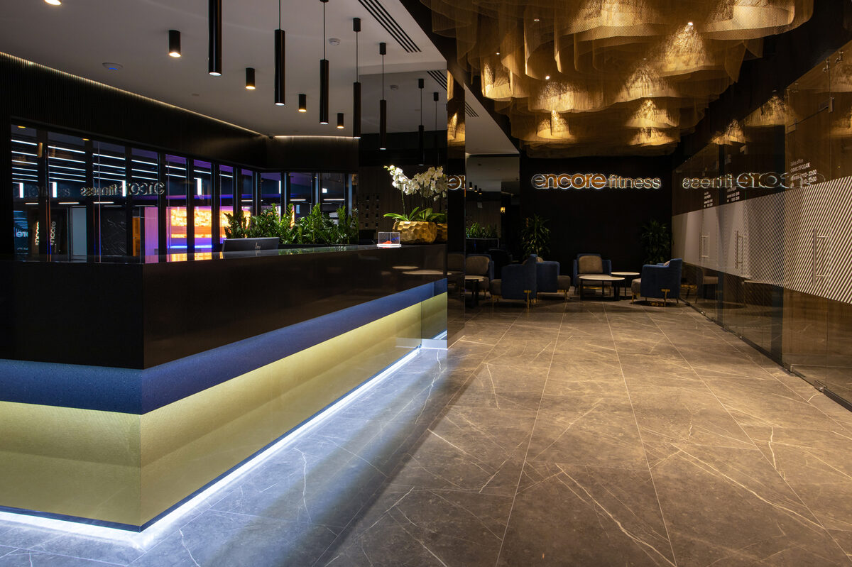 Визитная карточка всех клубов Encore Fitness — роскошные интерьеры невероятной красоты. В новом клубе сделан футуристический дизайн по проекту архитектурного бюро Александра Паркина. Его главная особенность — уникальная система подсветки и мультимедийные инсталляции, причудливым образом преобразующие пространство.