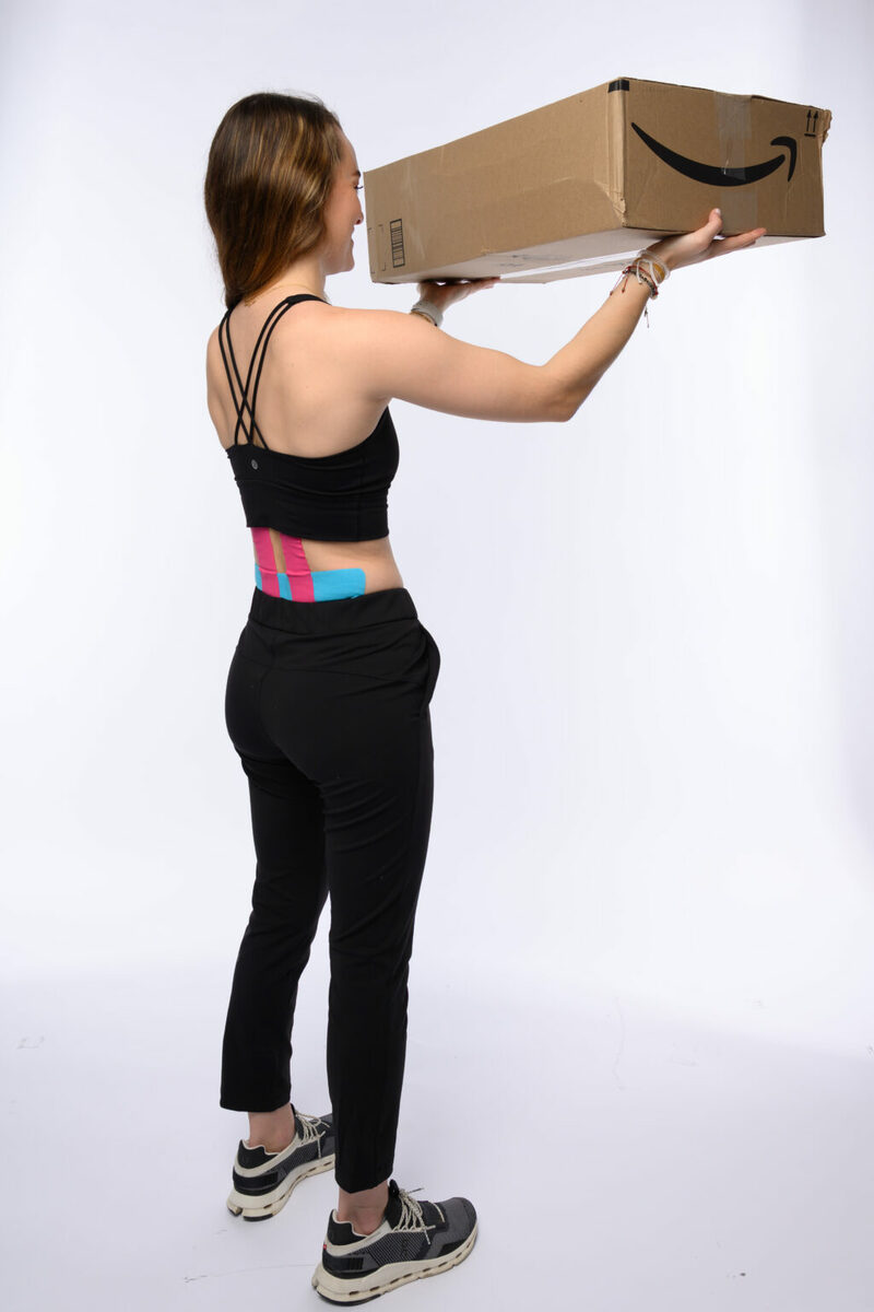 1. Коррекция осанки. Кинезиотейп можно применять для коррекции осанки, обеспечивая обратную связь пораженного участка с нервной системой (мозгом). Тейп, наложенный на целевую область (поясницу), будет напоминать телу о необходимости сохранять корректное для восстановления положение.