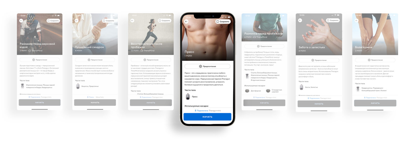 Приложение Therabody представляет собой идеального компаньона, делая использование Theragun более удобным, увлекательным и персонализированным. На основе ваших тренировок и уровня активности, данные о которых берутся из сторонних фитнес-приложений, а также с учетом индивидуальных потребностей и целей, приложение предложит вам персонализированные программы терапии для достижения максимальных результатов.