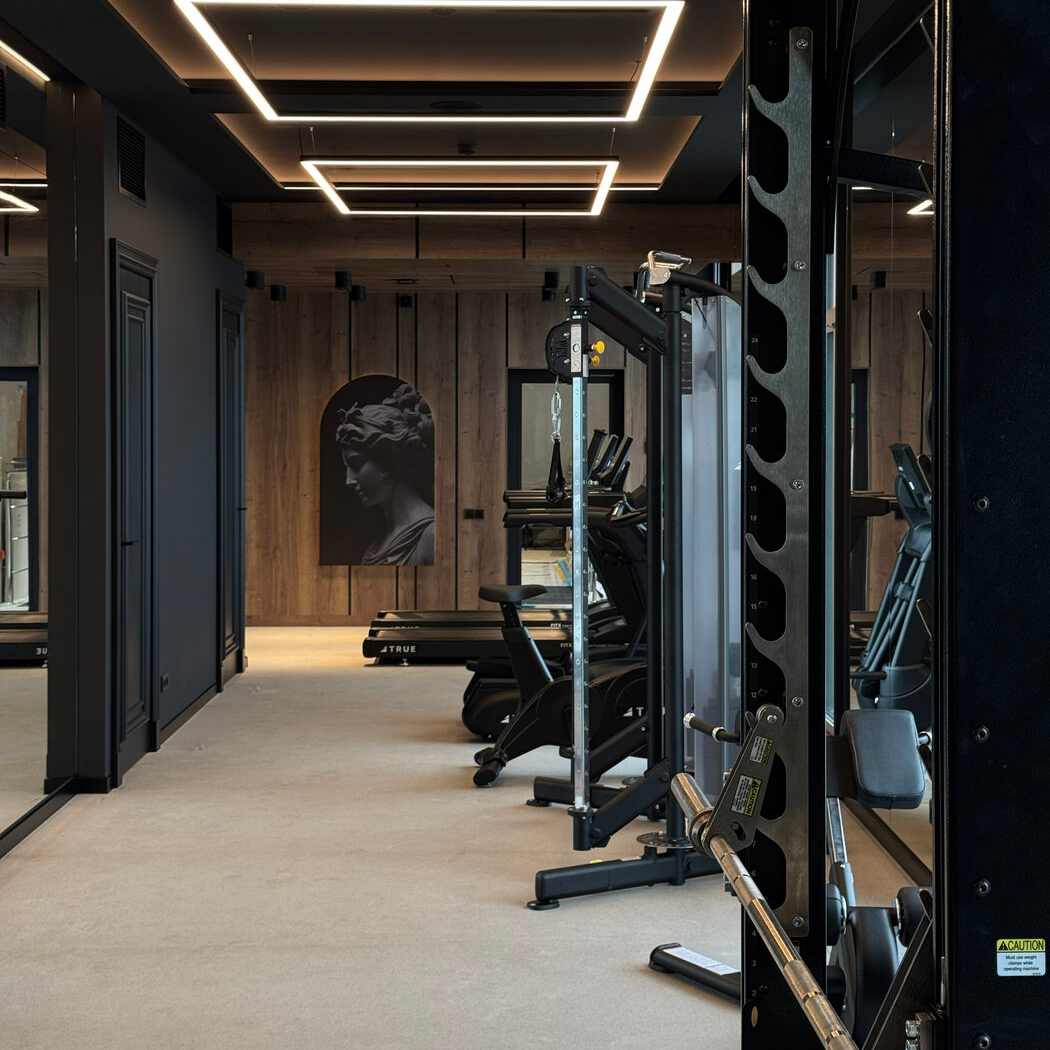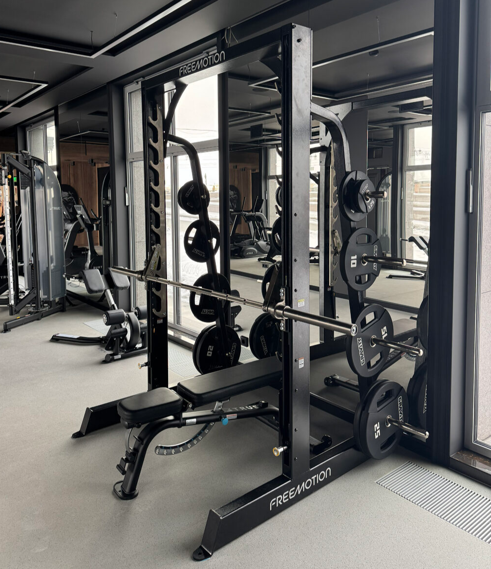 Помещение клуба разделено на зоны для разных видов активности: от интенсивного кардио до силовой работы и функционального тренинга.